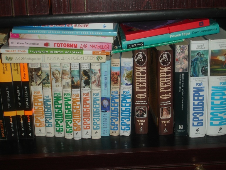 Покет "Человек в картинках" был первым в коллекции. Взрослые книги после рождения сына либо разместила у родителей, либо задвинула поглубже, а вот эти так и красуются. И новенький О.Генри (тоже любимый) рядом, взамен букинистического, 2 том сейчас перечитываю. А у Брэдбери, кроме рассказов, я часто перечитываю "Вино из одуванчиков".