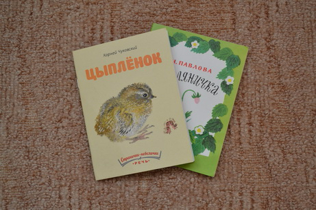 Две невелички с прозой. "Цыплёнок" Чуковского и "Земляничка" Павловой. Идеальны в качестве первой прозы, максимум картинок, минимум текста. "Земляничку" вообще взяла за компанию с другими невеличками, а она стала у дочери хитом. Перечитывали бесчисленное количество раз, поэтому всем рекомендую!