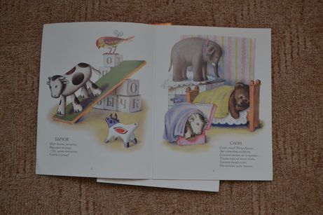 Дальше обожаемый дочкой Синявский. Непростительно забыла написать о нём в прошлом нашем дневнике. Первой у нас появилась доставшаяся нам по наследству книга "Скороболтушки". Дочь сама достала её с полки, и длительное время книга была самой читаемой. Никогда бы не подумала, что эти простые стишки, напоминающие скорее скороговорки, вызовут такой интерес. На волне успеха наша коллекция пополнилась картонкой "Стишата-коротышата" и книжкой-пышкой "Подрасталкина книжка". Первую Вика полюбила, ко второй интерес был вялый.