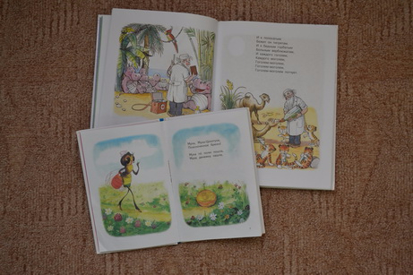 Начну с поэзии, т.к. именно ей отдавалось предпочтение. И первым пойдёт мэтр Чуковский. Знакомство с его творчеством началось в 1,9 с Мухи-Цокотухи и ближе к двум годам продолжилось Айболитом. Остальные произведения дочку пока не интересуют. Долго выбирала свою Муху-Цокотуху и в итоге остановилась на скромном издании от Оникса с илл. Елисеева и Каюкова. В содержании не указано, где чьи иллюстрации,но по-моему, от Елисеева в этой книге только загадки. В самой же Мухе-Цокотухе, из-за которой покупалась эта книга, иллюстрации радуют только в первой половине сказки, во второй половине, после гибели паука, они выполнены в мрачных однообразных тонах, как-будто на скорую руку. Айболита читаем из сборника с илл. Сутеева от изд. Астрель, и этот сборник радует во всех смыслах!