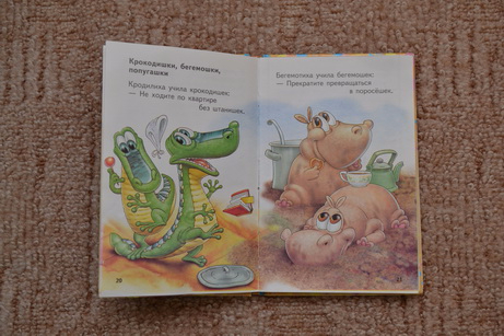 "Петя и Потап" Чижикова. Вот! Вот та самая книга, сместившая с пьедестала Бобо)) Покупала я её немного на вырост, взяла пока была акция и приятная цена. И что же… дочь выделила её из всей массы новинок и из рук больше не выпускала)) Пару месяцев мы читали её на завтрак, обед и ужин. Домой с прогулки возвращались без капризов, потому что "дома ждёт Потап". Как я рада, что не убрала эту книгу на дальнюю полку! Ведь в более старшем возрасте прочтение могло ограничится парой раз. Вот такие вот чудеса творит Чижиков своими рисунками))
