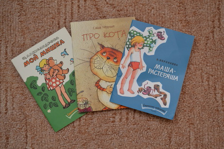 Тройка не менее известных невеличек "Мой мишка" Александровой, "Про кота" Саши Чёрного и "Маша-растеряша" Воронковой. "Мой мишка" - дубль к изданию от МП. Очень хотелось это стихотворение в знакомых с детства иллюстрациях Валька, моя к сожалению не сохранилась. Книге "Про кота" мама радуется даже больше дочи)) Всё хорошо в этой книге и текст, и идеально подходящие под него иллюстрации. Ну какой же очаровательный кот получился! Когда я читала это стихотворение на этапе выбора книг, оно меня смущало, казалось каким-то нескладным, и оценила я всю его прелесть, только начав читать вслух! Дочке нравятся все три книги, но в хиты попала "Маша-растеряша", которая от частого чтения обзавелась замятыми уголками.