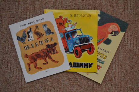 Тройка хорошо известных в нашем сообществе книг "Жадина" Мошковской, "Про машину" Берестова и "Что снится моржу" Заходера. Чудесные книги! Каждую перечитывали неоднократно и с интересом.
