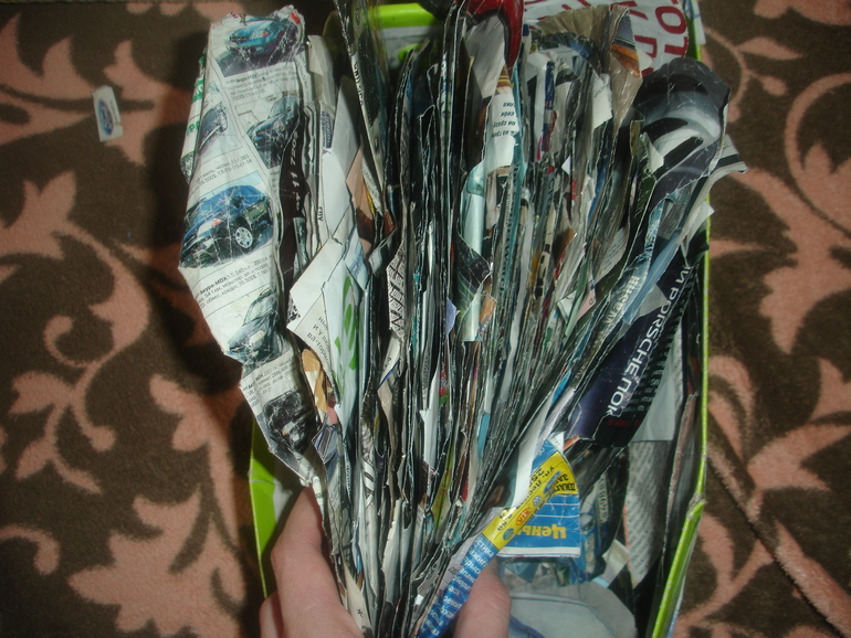 Оценили толщину вырезок? На коробку из-под балеток хватает. Сколько же журналов попало под ножницы ради этой коробки... Здесь все Санькины бумажные машины. Естественно, он знает все модели, от бюджетных китайских и корейских, до элитных европейских, а ещё русские, американские...Каждый день, начиная с лета, он их перекладывает, рассыпает, топчет (вон уже коробку повредил). Уже грозились выбросить, если не будет собирать. Ему уже самому лень собирать всё это, когда оно рассеяно тонким слоем по залу, попадает под ковёр. Вздыхает, собирает вместе со мной. Пробовали прятать - расстраивается, чуть не плачет, боится, как бы правда не выкинули. Ну, и коллекция. На Новый год появится ещё бензоколонка, да и за новогодние праздники автопарк ещё слегка расширится.