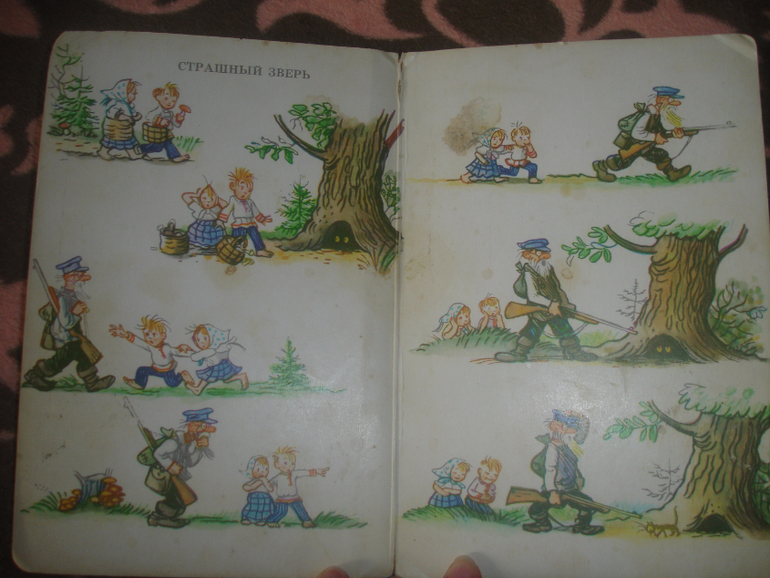 "Охотник и змея"- показывала эту книгу среди другой букинистики, вчиталась и поняла, что можно попробовать читать. Сказка «Охотник и змея» содержит довольно часто встречающуюся идею, чем платить за добро: добром или злом? Охотник спасает змею, а та собирается его ужалить. Охотник предлагает спросить у встречных, чем надо отвечать на добро, а уж если они скажут, что злом, то пусть змея его погубит. Корова и лошадь говорят, что платят своим хозяевам добром за то, что те за ними ухаживают, но змея недовольна и решает спросить у дикого, а не домашнего животного. Так охотник и змея спрашивают кошку, тогда ещё дикую. Кошка убивает змею, а охотник в благодарность забирает кошку к себе домой и обещает всячески холить и лелеять её. С тех пор люди и кошки живут в мире и дружбе.