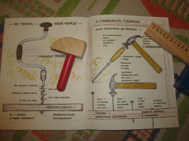 Страсть к инструментам у Илюхи давно. Как и многие мальчишки, он целыми днями что-то пилит, приколачивает, подкручивает... Названия многих инструментов мы знаем, благодаря бобру Кастору. Но книжечка А. Шибаева стала особенно любимой. Стихотворение просто гениальное! И надеемся, что Речь продолжит серию "Любимая папина книжка".
