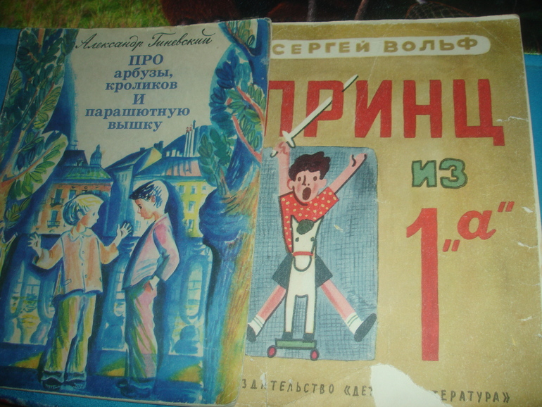 А.Гиневский - "Про арбузы, кроликов и парашютную вышку". Рисунки Е.Александровой, "Детская литература", 1982 г. Оставлю Сане на самостоятельное чтение. Небольшие, но весёлые рассказы.