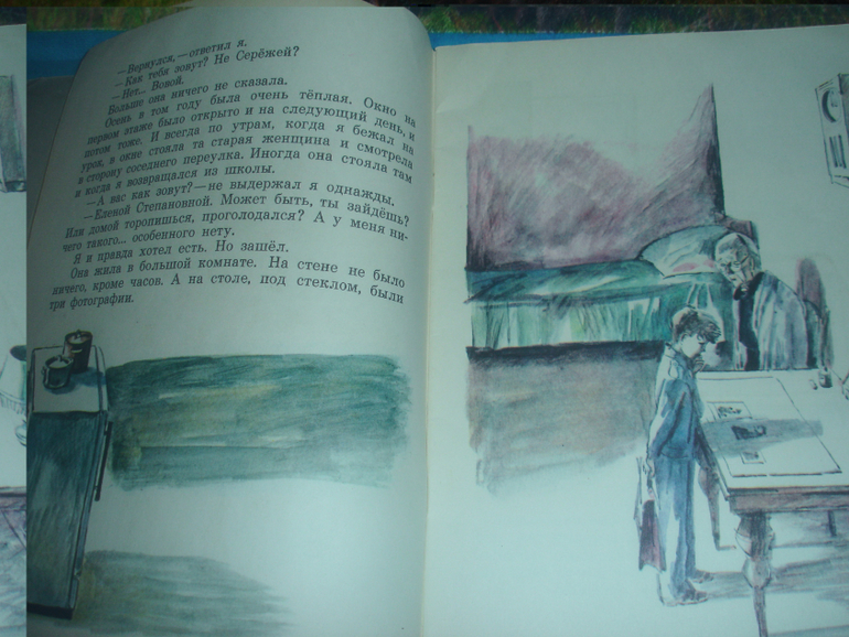 П.Шеманаев - "Ключик". "Малыш", 1979 г. Художник В.Гальдяев. Рассказы не для дошкольников, для младшешкольников и старше. На непростую тему. В первом рассказе мальчик замечает, что когда идёт в школу, в окно на него постоянно смотрит старушка. Он замечает фамилию старушки на двери, а потом, в школе, случайно встречает уже знакомую фамилию среди учеников школы, погибших на войне. Мальчик идёт в гости к старушке, видит у неё фотографию, слушает рассказ и понимает, что это её сын погиб на войне, и теперь она стоит около окна и смотрит на детей, которые идут в ту же школу, в которой учился её сын.