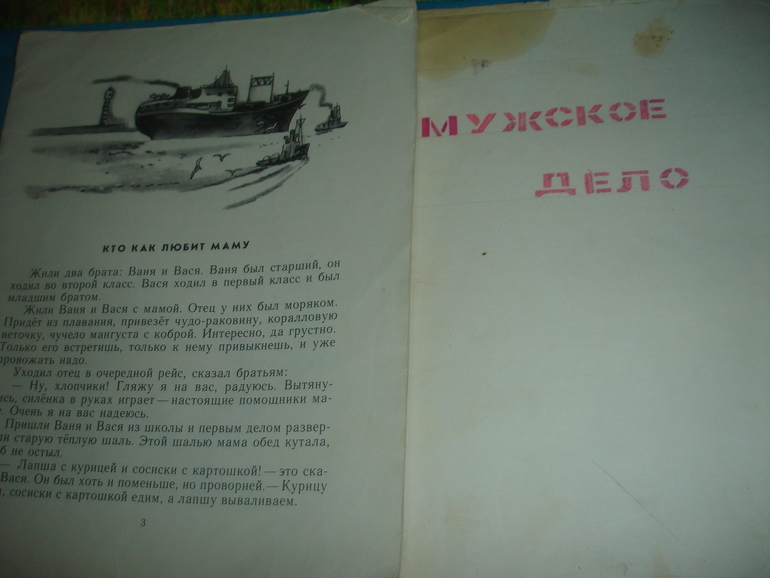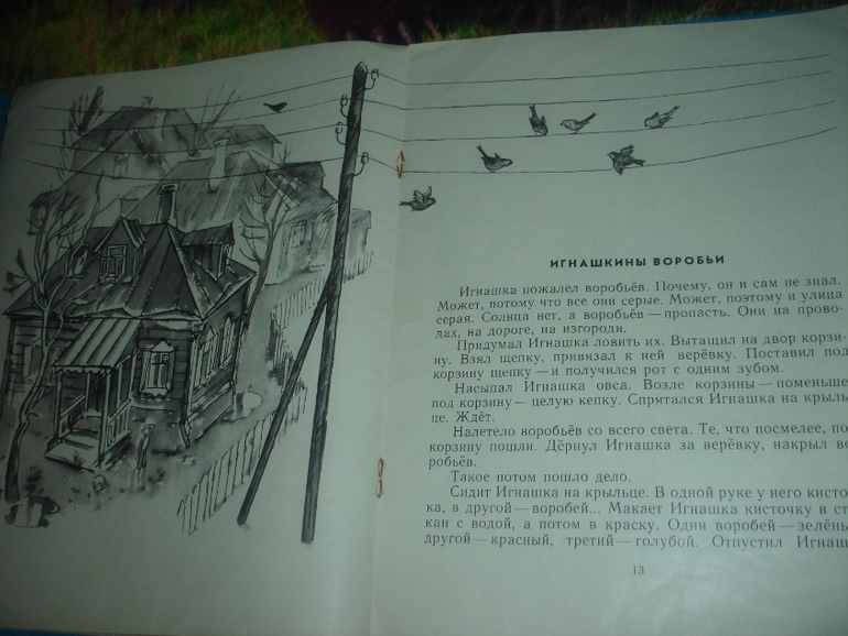 Как подсказал интернет, первая книга автора Владислава Бахревского. Там три рассказа, поучительные ("Кто как любит маму") и не особо - "Игнашкины воробьи" и "Дом с жабой". Надо будет найти окончание рассказа "Дом с жабой", у нас нет, а я заинтригована.