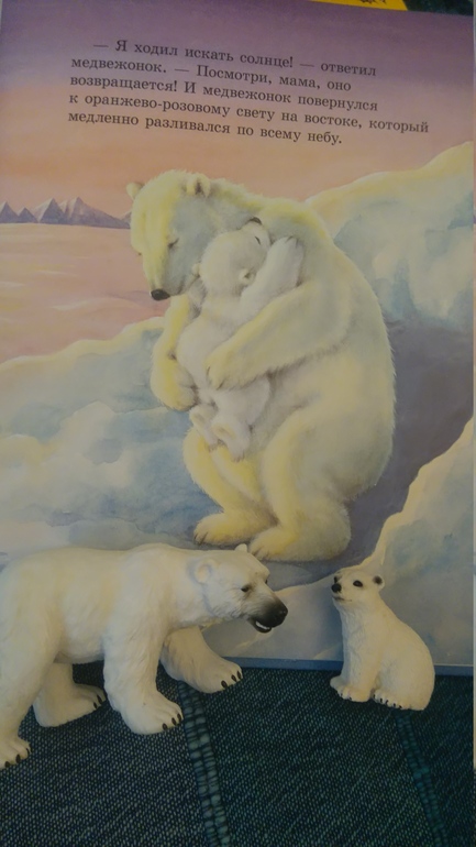 А книгу Как медвежонок солнце искал я вообще то девчачей считала) но однажды дома у нас поселились два белых медведя, мама с сыном) и книжка стала просто необходима) она реально нереально красивая!