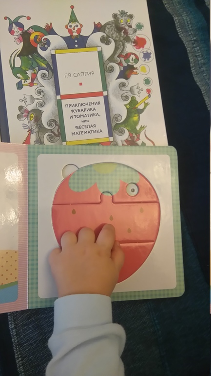 Книжечку с пазлами от мозаики прикупил уже убегая, подумав как же так все на вырост, а чем сейчас то малыша порадую)) скажу сразу, малыша порадовать удалось, очень ему нравиться вытаскивать и пытаться обратно вложить пазлы.