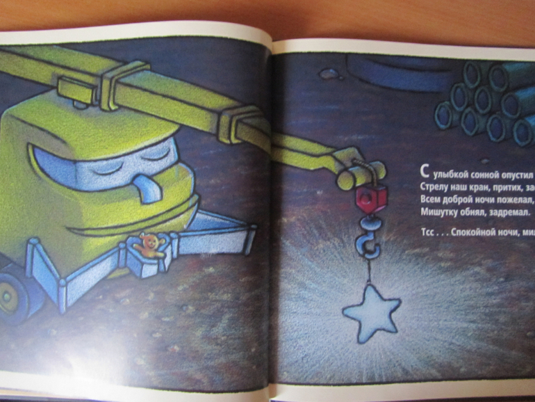 Вот помню, когда купила эту книгу, очень переживала, что сын ею совсем не проникся, и сама периодически читала ему, пытаясь пробудить к ней интерес.. Дочиталась )) Теперь это у нас настольная книга номер один! И вот даже теперь приходится собирать коллекцию строительной техники )) Иллюстрации темноваты немного, но всё таки не зря она так любима маленькими мальчишками всего света! Книга познавательная - знакомит ребёнка со строительной техникой, хоть и в своеобразной форме ))