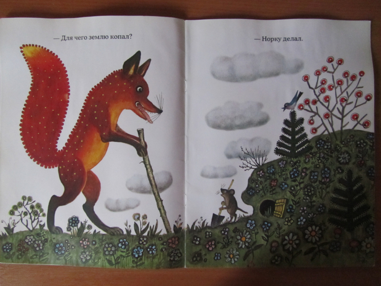 Книга как и предыдущая удобного небольшого формата, и действительно напоминает кадры из диафильма. Странички гладенькие, но первая и последняя иллюстрации напечатаны на обложке, поэтому цветность у этих страниц пострадала, вообще конечно хотелось бы большего качества, но как говорится "на безрыбье.."