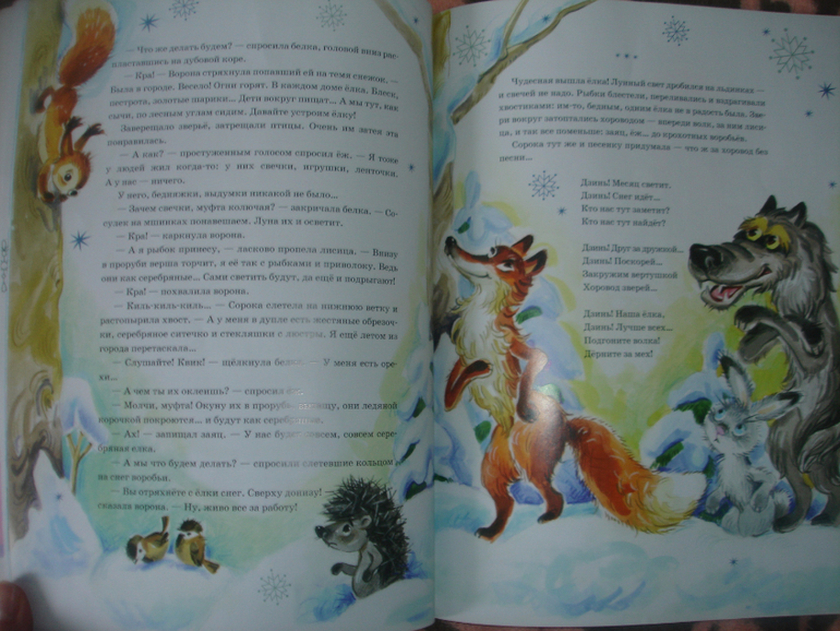 «Сказку о ёлочке и её друзьях» и «Сказку о сереньком пёрышке» тоже читаем исключительно вместе, сказка про ёлочку вполне себе новогодняя, хотя я её и не прятала весь год.