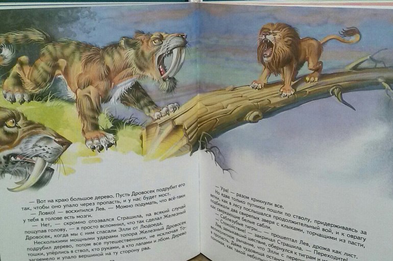 Читали недели две, иногда перечитывая отдельные главы. Сначала мне казалось, что дочка теряется в сюжете и не совсем понимает о чем речь. Но потом, услышав как она пересказывает историю своей подружке на прогулке, я успокоилась. Основную суть ребенок уловил. Правда от себя она добавила, что льву нужно не только храброе сердце, но и клыки как у саблезубых тигров.