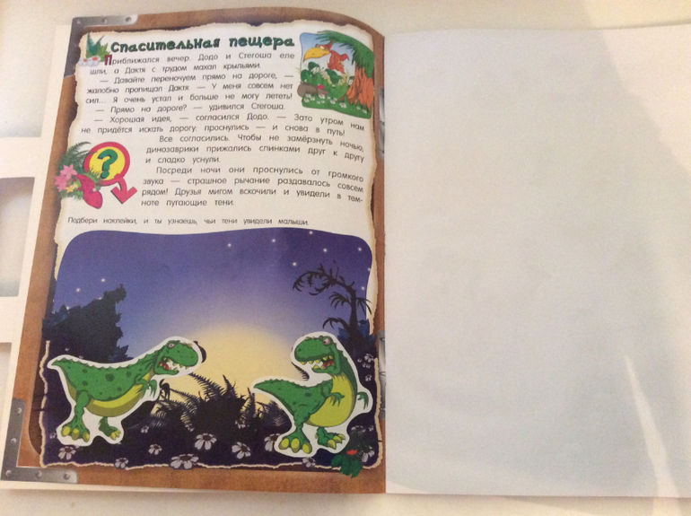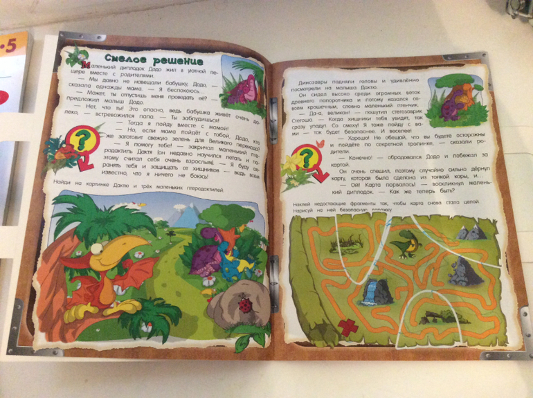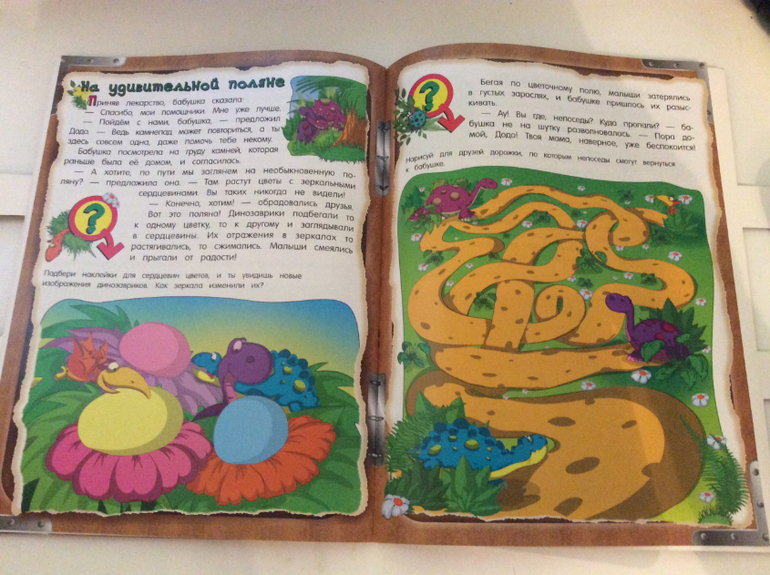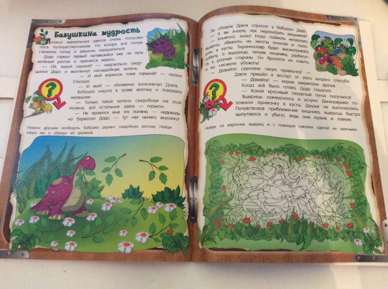 В конце каждой странички есть небольшое задание. Наклейки многоразовые, легко отклеиваются и приклеиваются. Задание с картой для меня было не понятно, я не могла найти точку выхода... для четырех лет достаточно простое, но эти задание ИМХО идут как бонус к самой книжке, а в дороге трудные задания и не к чему)