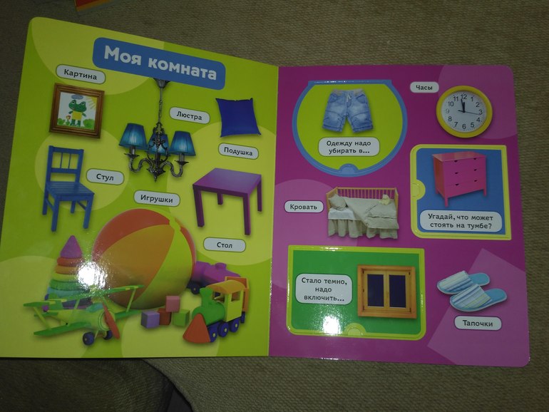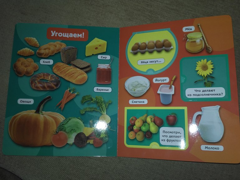 Сама по себе книжка - это нечто среднее между гляделкой и первой энциклопедии ( возраст стоит до 3 лет). Плюс открывание окошечек- приятный бонус. Они, окошечки, тоже со смыслом: задается вопрос, внутри ответ. Просто выложу несколько страниц. Сами страницы глянцевые, поэтому фото не очень(((.