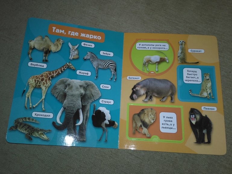 Дикие животные. Сами животные расположены по "месту обитания". Можно конечно придраться к подбору животных. Тигр например есть только на обложке. Но в целом даже для меня в некотором смысле познавательно. Некоторых животных я вообще не знала.