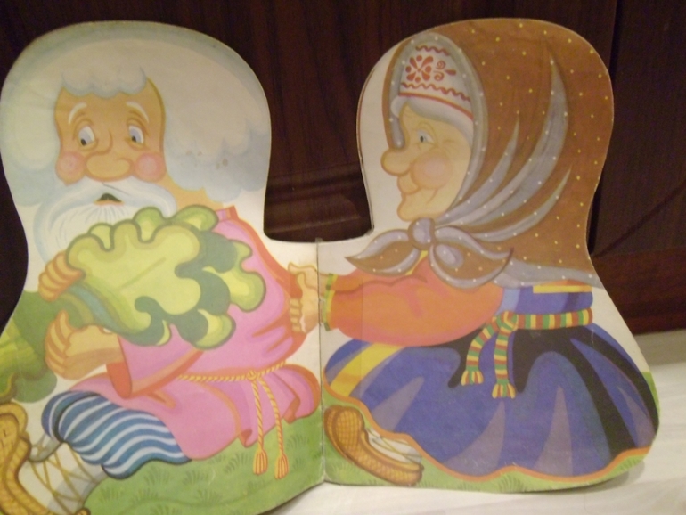 Репка.У нас вот такая,вообще не помню откуда она.Для малышей самое оно,была бы из картона,прожила бы дольше конечно,а так её периодически скотчем подклеиваю.
