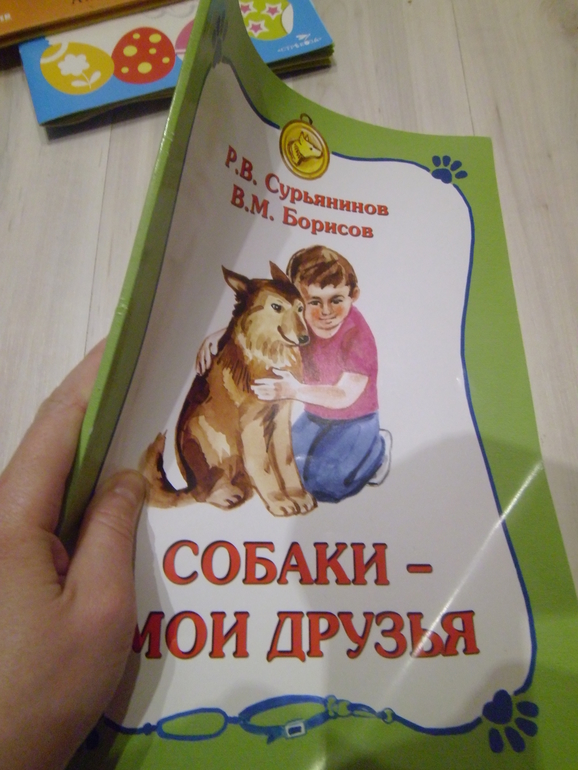 Про собак.Очень хвалили эту книгу в дк.Почитала сканы и решила взять.Щас вылью кувшин дегтя в вашу бочку мёда. Во-первых, мерзкий формат.А4,80 страниц(80! товарищи)и мягкая обложка,книжка выглядит как журнал. Бумага тонкая меловка,читать не очень удобно,книга гуляет в руках.В небольшом формате, с твёрдой обложкой и на офсете смотрелась бы намного лучше.А так и с тонкими не положишь,и с толстыми не поставишь.Махыч её вечно найти не может из-за этого.