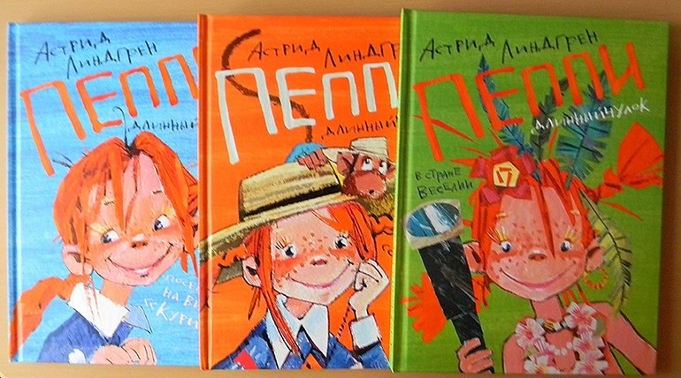 2 место. "Пеппи.." У нас две части только (нет зеленой). Очень долго сын не соглашался прочитать Пеппи, достанет,посмотрит и говорит не хочу,потом выяснила почему не хочет. В первый раз сказал не хочу читать про этоГО Пеппи.Он почему то решил,что на обложке мальчик нарисован. А затем спросила,что не так,почему не хочет читать, сказал,что картинки не нравятся совершенно.Зато когда все же прочли первую часть, то сказал,что обязательно нужна вторая и третья книги. На этой волне сразу приобрели и прочли вторую, а вот с третьей я решила притормозить, так как к концу второй книги стал слушать менее внимательно,наверное поднадоело. Покупка третьей книги у меня в планах на февраль. И теперь когда видит,что смотрю книги с иллюстрациями Бугославской, то говорит, что нам она точно нужна. Вот такая она загадочная детская душа!!