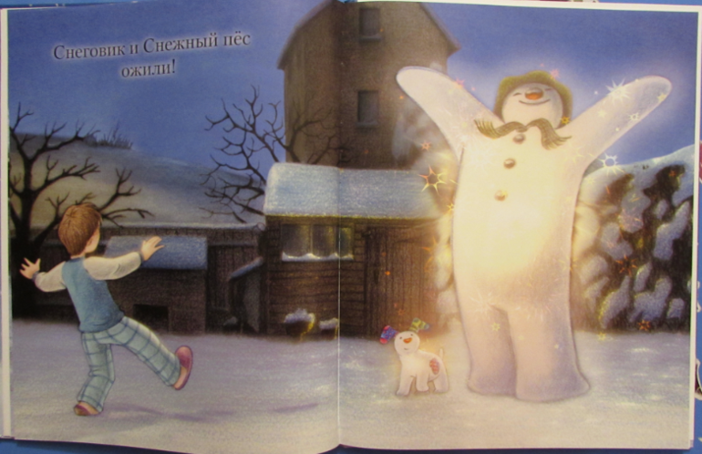 В конце книги Снеговик тает, а вот пес оживает и остается с мальчиком!!!