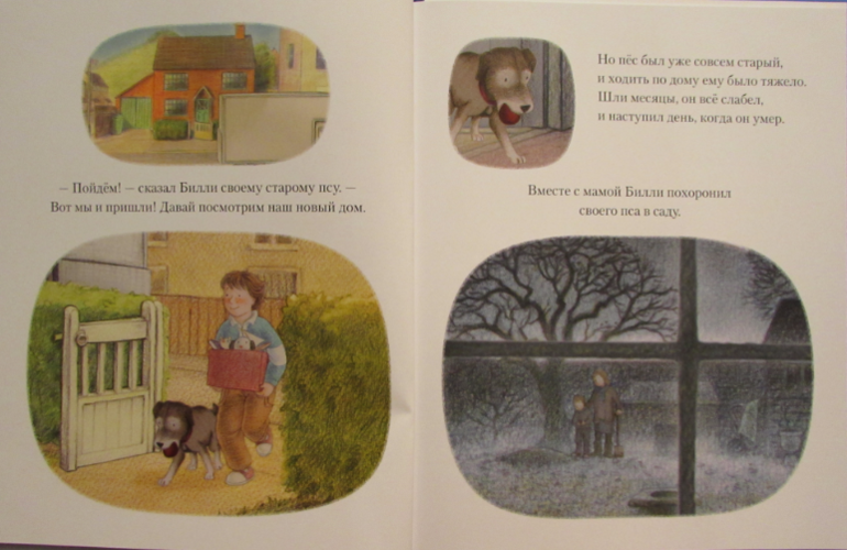 «Он полез в карман за носовым платком и наткнулся рукой на подарок Деда Мороза. Билли поспешно открыл сверток. Там оказался новенький собачий ошейник! Билли надел его на шею Снежному псу.
