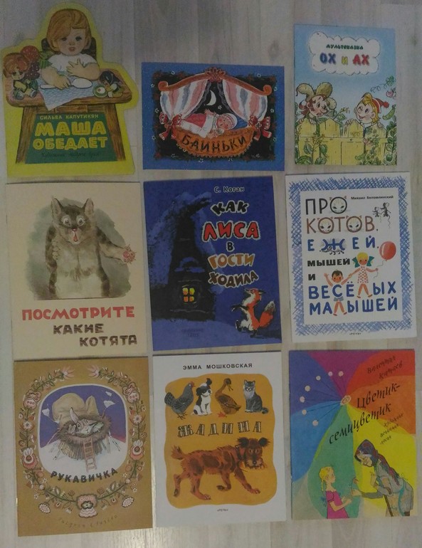 Она их грызла, рвала, листала, рассматривала каждый день и по многу раз одна или со мной, особенно (пардоньте) на горшке. Это были ее личные книжки и я к ней не придиралась, мне почему то казалось, что я даю ребенку в плане литературы все что надо. А ну было еще пару сборников стихов и сказок с тонкими листами, которые рвались довольно часто, а я их клеила скотчем и приговаривала, что мой ребенок еще не готов слушать или листать детские книги.