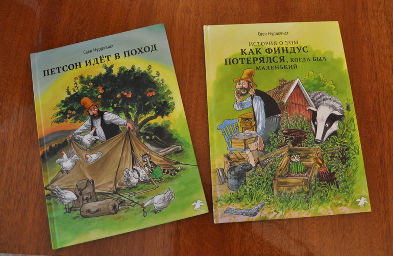 3. Место отдам Мулле Меку и Финдусу с Петсоном. Тоже не могу выделить кого-то больше из этих двух парочек. Каждой серии у нас по три книги (сестра пополнила нашу коллекцию на НГ), недостающие берем в библиотеке, но решила для себя, что если без всего Мулле Мекка мы как-нибудь переживем, то Финдуса с Петсоном нам нужно всего, начали читать после 2 лет, по-началу сына больше интересовала собака Буффа, чем разные технические моменты книги. Но сейчас читаем уже более вдумчиво. Финдус и Петсон будут нами еще долго читаемы, сейчас пока лидерство держит книга "Как Финдус потерялся".