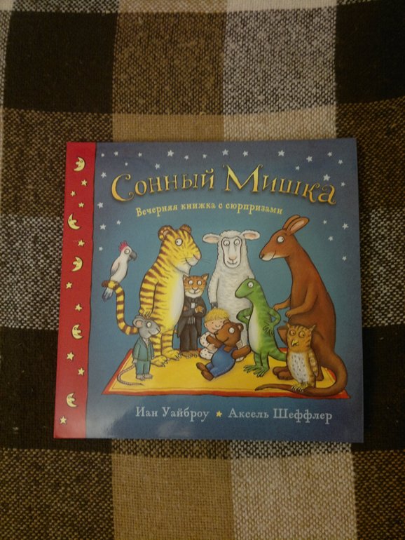 Сюда же воткну "Сонного мишку", автор там конечно не Дональдсон, а Уайброу, но иллюстратор тоже Шеффлер и книга наряду с Груффало была нашим фаворитом долгие месяцы, да и сейчас сын не откажется от ее прочтения на ночь, супер хит просто с множеством окошек и подвижных элементов, думаю с полутора лет можно ее читать.