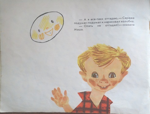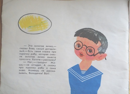 Сюжет книжки: в дождливый денек дети собрались на веранде рисовать. Кто-то рисовал дом, кто-то поезд… И вдруг самая маленькая девочка - Маша, сказала: «Посмотрите, что я нарисовала!» Дети посмотрели и увидели, что Маша нарисовала овал.
