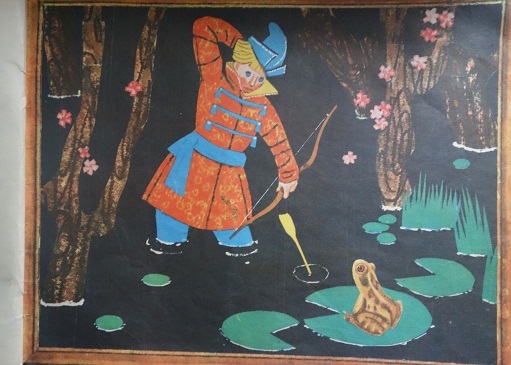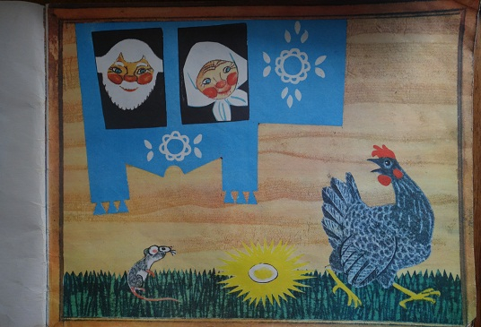 В книжке информация представлена по разворотам: слева «отгадка» очередного угадывальщика и справа картинка из сказки, где действует нарисованный персонаж.