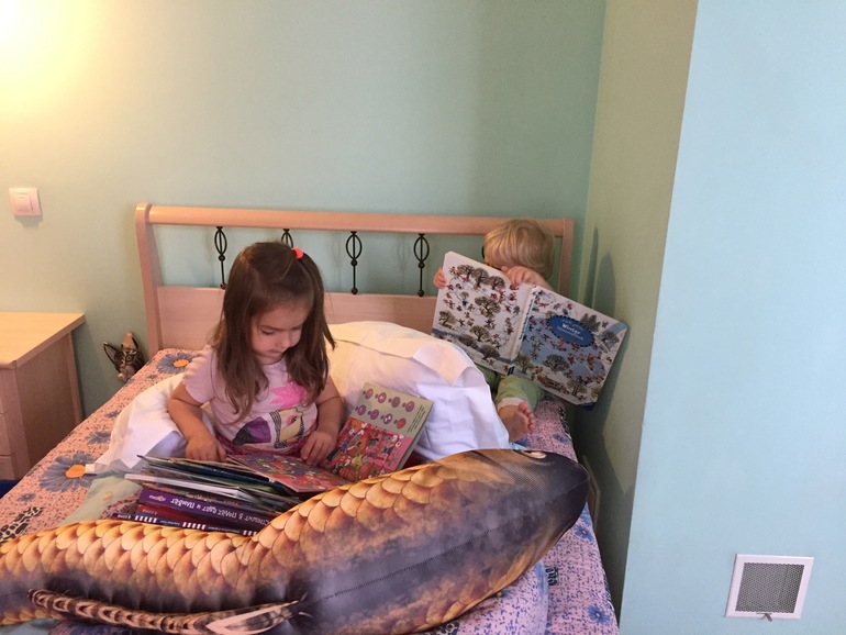 Мне кажется, что дочка уже родилась с любовью к книгам. Лучший способ ее успокоить был - почитать. Сейчас он уже не срабатывает :(((, но книги у нас везде. Вместо того, чтобы ложиться спать, она обкладывается ими и изучает, пока не вырубится. Правда, часть книг оставляет у входа в комнату братика, чтобы ему было, что почитать, когда проснётся. Это ее горячая 10. Выбрать только 10 книг очень сложно, даже невозможно. Некоторые любимые произведения (Питера Пэна и Академию пана Кляксы) мы читали в электронном варианте, их решила не включать. Вместе выбрали только книги из домашней библиотеки.