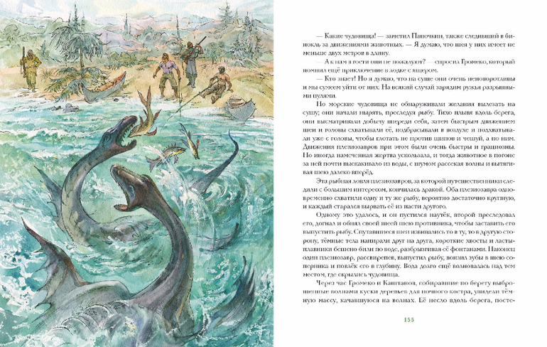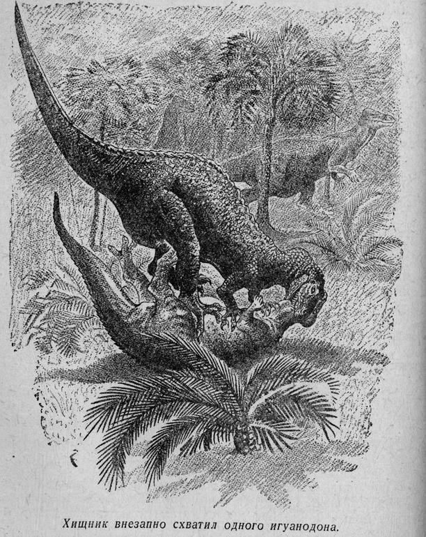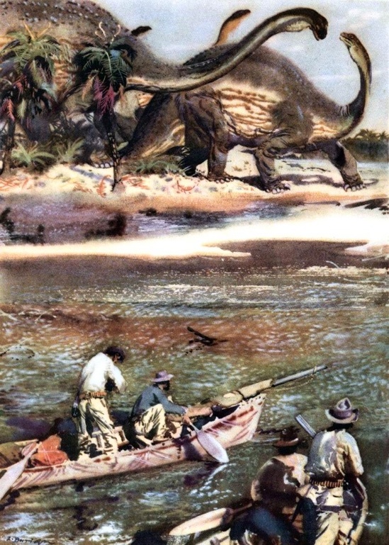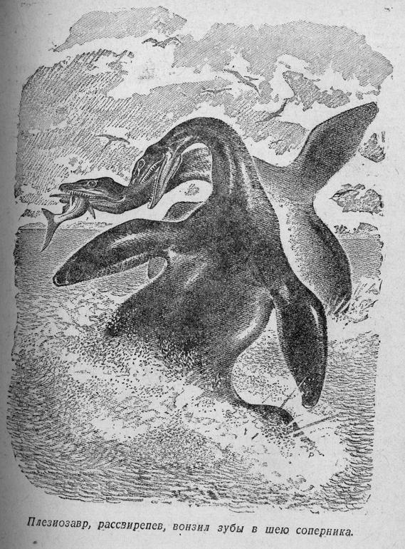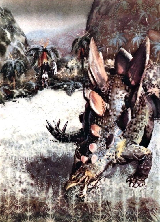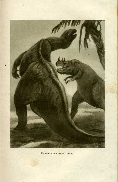 Наконец дождался "Плутонию",заявленную ещё 2 года назад. Взять её можно по двум причинам: 1. в большом подарочном формате ПЛУТОНИЯ никогда не издавалась, 2. цветные иллюстрации. Хотя, с позиции лучших палео-иллюстраторов,изображения древних животных не очень правдоподобные. Так у дерущихся плезиозавров ласты были цельные,а не перепончатые,как у птеродактилей крылья. Это полная безграмотность. Мои самые любимые иллюстрации к ПЛУТОНИИ Евгения Рачёва, изд.Престиж-Бук. Опять же,на его рисунке хорошо видны конечности у плезиозавра. У меня разные издания, но ещё очень нравится Географгиз,1953. Привожу здесь одну из вклеек "Игуанодон и цератозавр". Ну,и на десерт две иллюстрации знаменитого Буриана.