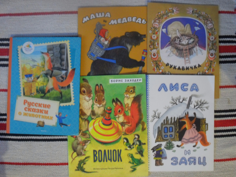 Октябрь тоже был сказочный. Но теперь уже "Маша и медведь" (самая-самая), из сборника - "Три медведя", "Лисичка-сестричка и волк", "Лиса и заяц". В этом году у нас снег окончательно выпал в середине октября, поэтому тут и зимние сказки - "Рукавичка" и "Лиса и заяц".