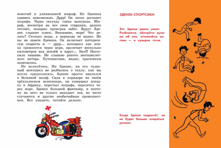 Зденек большой фантазёр и не может обойтись без выдумки! Вот он представляет, как дразнит блинчиками дракона или как перелетает на мотоцикле через море, а потом вместе с братом Тоником и сестрой Боженкой путешествует по джунглям, попадает в песчаную бурю и убегает от белых медведей. И чего он только не придумает!