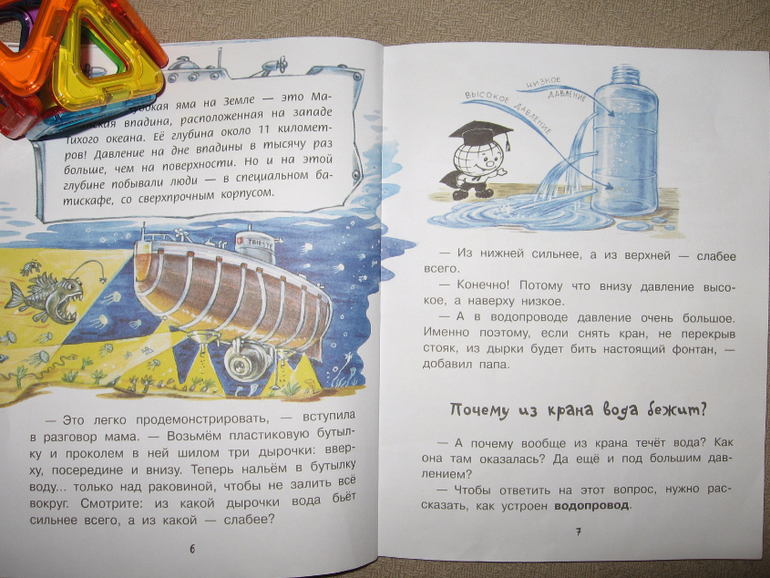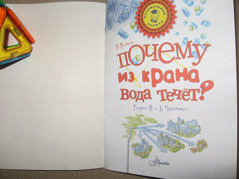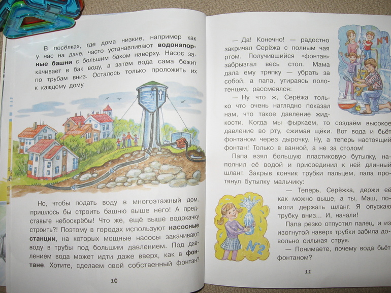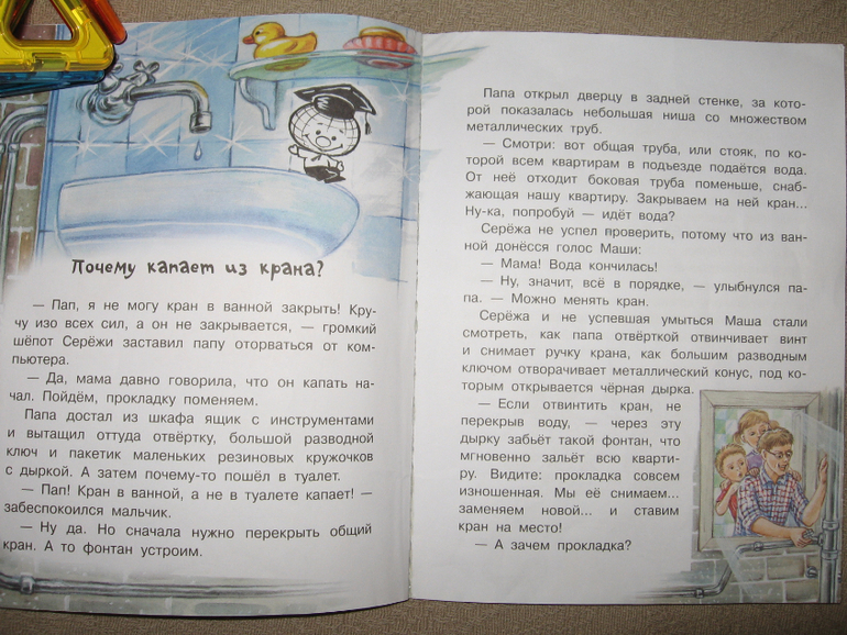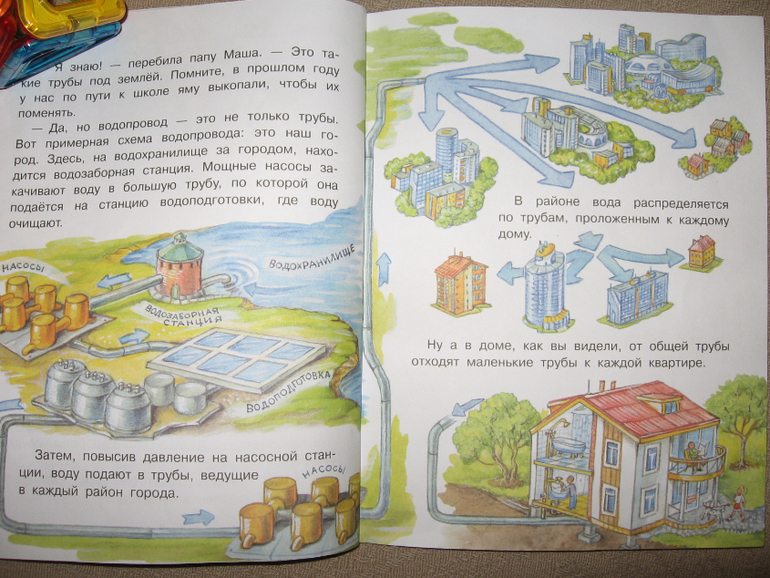 Следом идет книга про водопровод. Тоже читана-перечитана. Очень нравится мне, как в книге дан ответ на вопросы "Почему, как и откуда в кране вода?" Рассказано не только доступно, но и наглядно показано.
