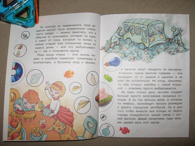 Самой читаемой и любимой оказалась книга про мусор. После ее прочтения появилась еще одна мечта у сына. Говорит, когда вырасту - буду пожарным, и еще мусор буду перерабатывать)))