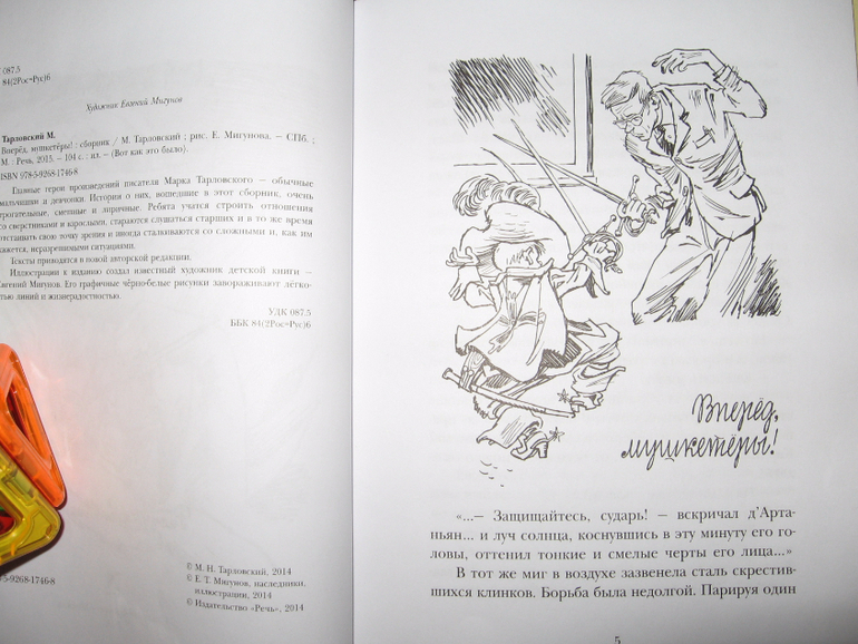 Тоже прочитана один раз, хотя пару раз брал с собой в сад. Понравилась, но не так, как первые две. Фурора книга не произвела скорее всего потому, что сын совсем не играет в солдатиков, у него нет игрушечного оружия (и не просит), дома и в саду отдает предпочтение конструкторам.