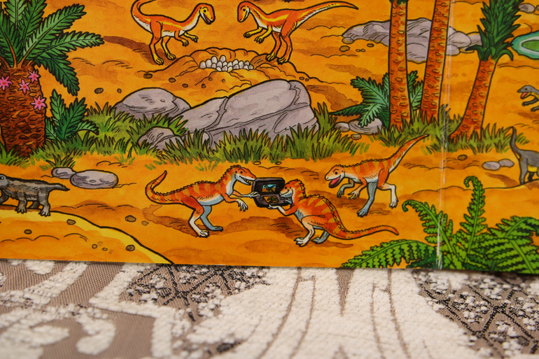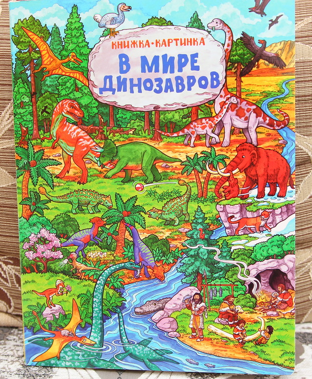 Димка весь день просил почитать книгу про динозавров, а вечером принес её папе. Первая реакция папы была - недоумение и возмущение. Моя, впрочем, была такая же, только за пару месяцев я уже поостыла, поэтому книгу посоветовать не могу. Кроме сомнительного содержания мне изначально не понравилось качество страниц. Они показались мне рыхлыми. Возможно, я избалована "Городком", однако, "В мире динозавров" мы не читали совсем. Книга стояла в шкафу с другими книгами и за один день использования у неё залохматилась обложка.