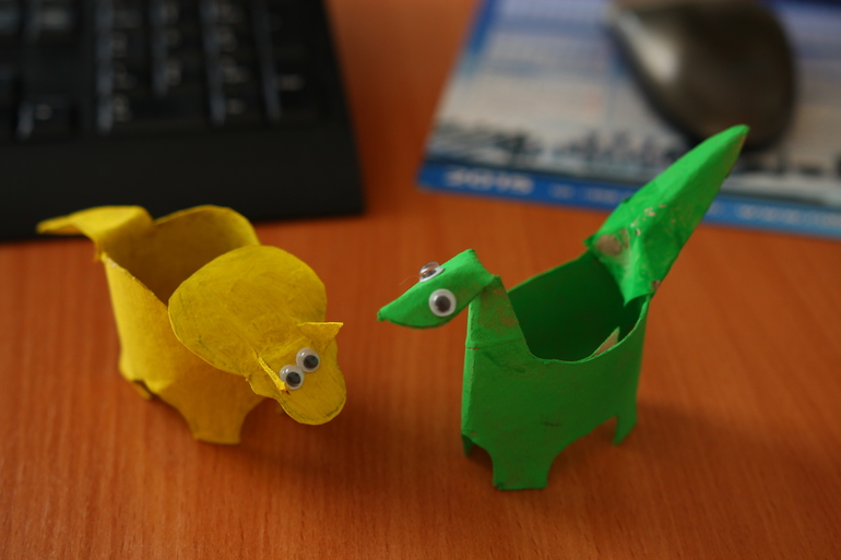 - Подзорную?! А давай-ка лучше сделаем динозавра, - предложила я. Бинокль из втулок мы уже делали, а недавно я увидела совсем простой МК по поделкам из втулок.