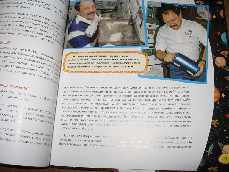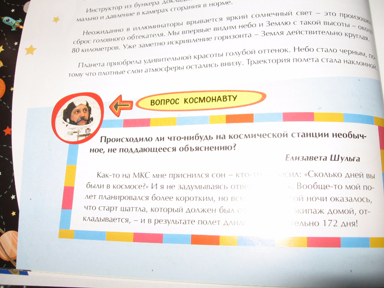Ну, во-первых, автор этой книги наш, а издание не переводное. Да и к тому же не просто автор, а космонавт с огромным стажем. Нет, я не то чтобы против зарубежных авторов, но вот такой книги от них я не встречала. Да и переводчики тоже частенько лажают.