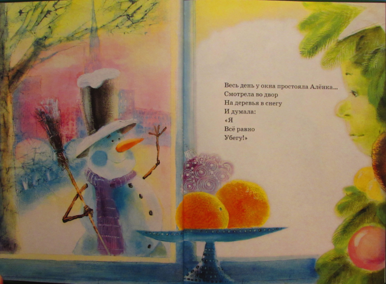 Мне очень понравилась идея оформления обложки. Смотрите. Книжка зимняя. На обложке книги нарисованы естественно снежинки. И эти же снежинки участвуют в написании названия книги.