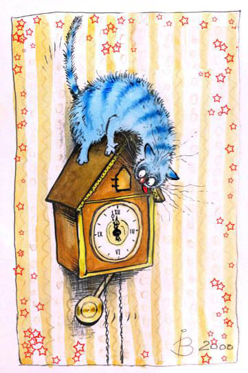 Шикарные часы на последней картинке! У Винни-Пуха - просто загляденье)). А чёрные кот сам великолепен! Спасибо за участие, очень интересно!)))