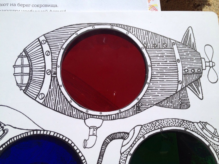 А на другой странице ты видишь картинку, но посмотрев через эту «цветную лупу», увидишь, что часть картинки куда-то подевалась вообще, но зато цвета становятся ярче и «богаче».))