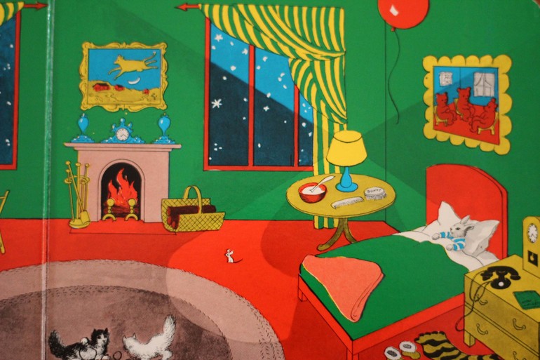 Знаменитая зеленая комната из "Good Night Moon", в которой часы и на камине и у кровати.
