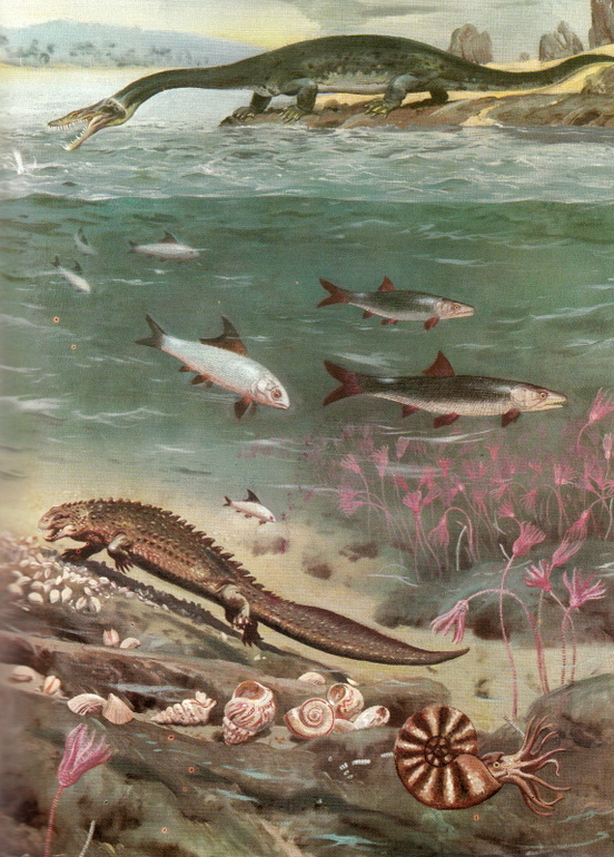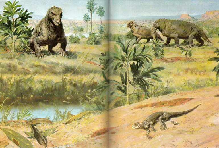 Да,это Зденек Буриан. Я специально выложил картины,не входившие в русскоязычные альбомы, и редко встречающиеся. "История жизни..." у меня есть,но я больше люблю "По путям развития жизни", она и форматом побольше, и каждая картина на весь лист,нет прошитых разворотов, или по две маленьких на лист. Что до реконструкций самих динозавров,понимаете,я на этом вырос, и мне всегда будет близка именно школа Буриана, или NEAVE PARKER, даже школьные буквари по зоологии советского периода. Я и стараюсь покупать на иностранных аукционах книги 50-70х гг именно с такими рисунками. Вот на первом рисунке стегозавр классический,а сейчас что рисуют в энциклопедиях? Морда как у овцы, хвост задран выше головы,на спине растут какие-то сучья... А буриановский тираннозавр мордой похож на собаку, да ещё и красный. Но мне он нравится. А вообще,кто знает,какие они были...