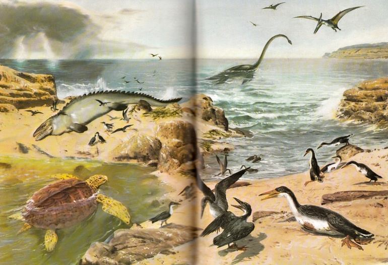 Это Зденек Буриан? Прекрасные иллюстрации, целые картины в прямом смысле. Буриан, конечно, лучший из художников-палеонтологов. Сейчас никто подобным заниматься не будет, да и такие таланты не часто встречаются. Переиздания работ Буриана тоже ждать не приходится, к сожалению, поскольку они уже утратили научную ценность - динозавры с хвостиками, волочащимися по земле, тираннозавр с мордой крокодила. Но своему ребенку на вырост я все-таки купила букинистическую "Историю жизни на земле" в идеальном состоянии, т.к. сама не могу пройти мимо таких рисунков.