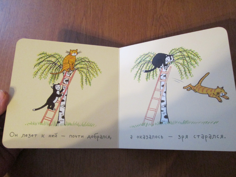 Ребенок легко сможет научиться сам читать эту книгу, по картинке, потому что каждое действие сопровождается текстом. Мне кажется, ещё серия про Макса есть, но не помню кто автор. Там тоже большие картинки и чуть-чуть текста.