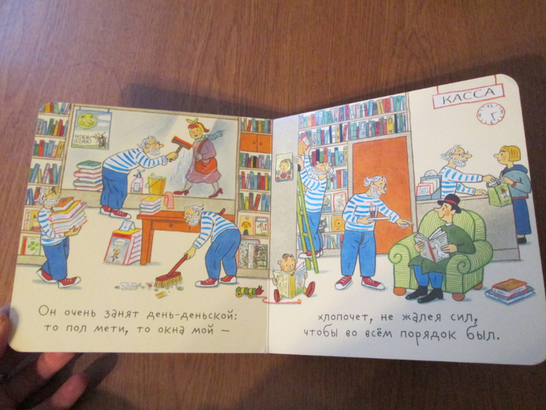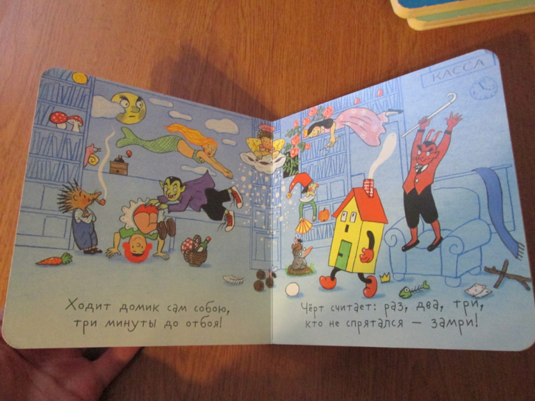 Как и вся серия Городок, они сделаны из плотного картона. Но формат маленький, дорожный. Чемоданчик же сыном очень долго использовался для переноски книг) И счастью его не было предела. Правда были и попытки разбросать книги и использовать их не по назначению...
